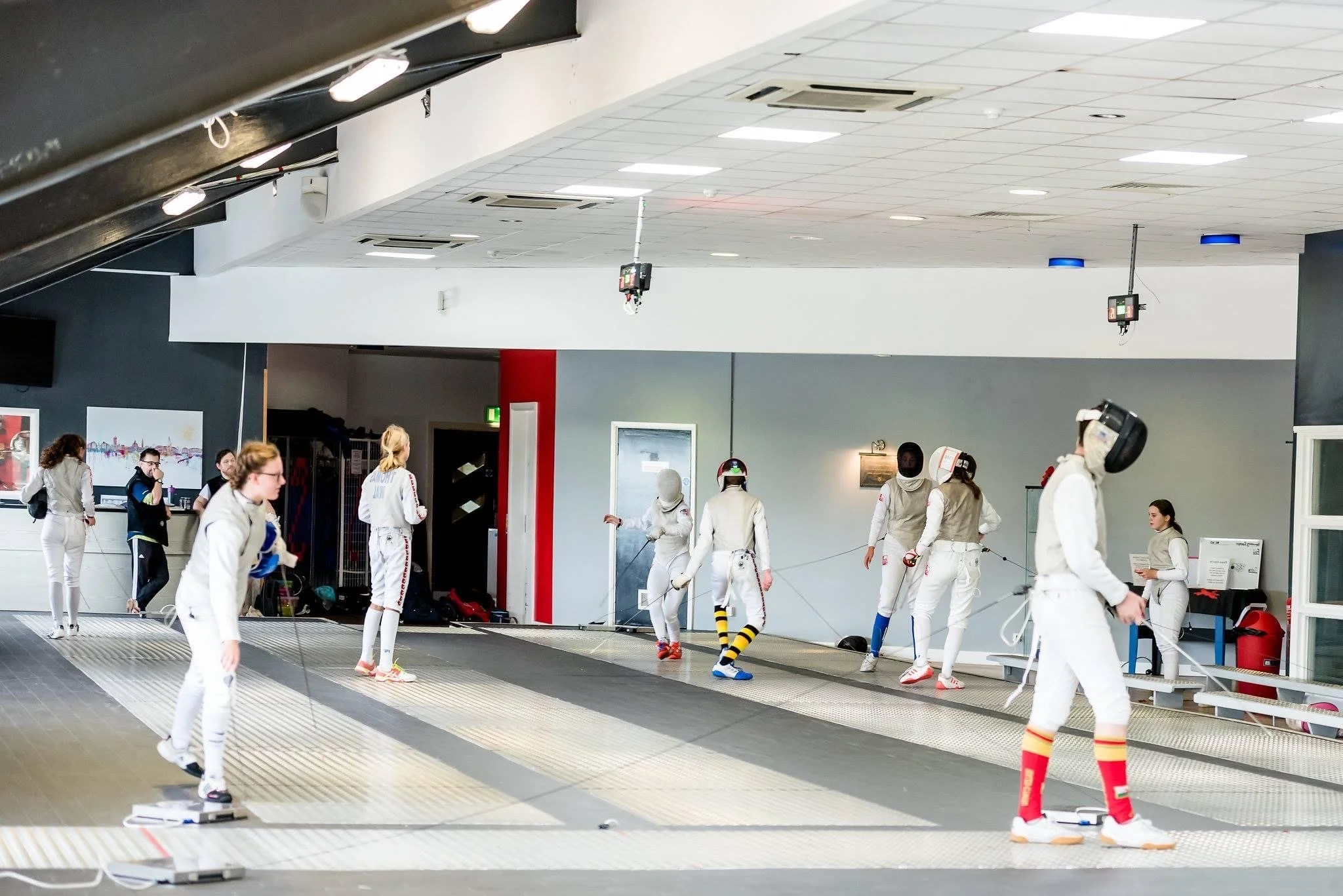 Cardiff Academy Of Fencing is the only full time fencing salle in Wales. It has 8 full metallic pistes with scoring boxes as well as games and S&C equipment. Situated within Splash Central, we have an onsite café and soft play area as well as changing room facilities. The Academy hosts coaching courses, competitions and Sports Psychology workshops as well as a full club timetable for anyone aged 5 and up.
